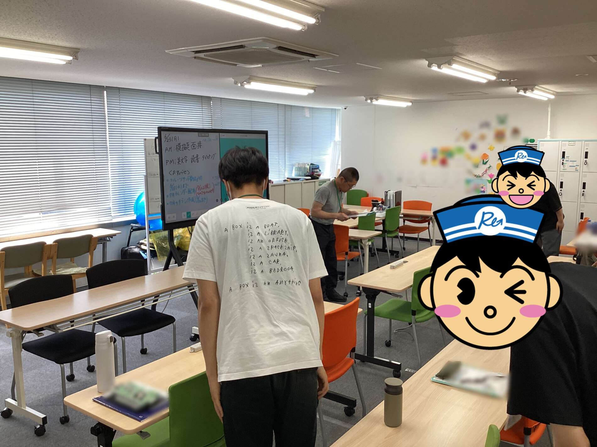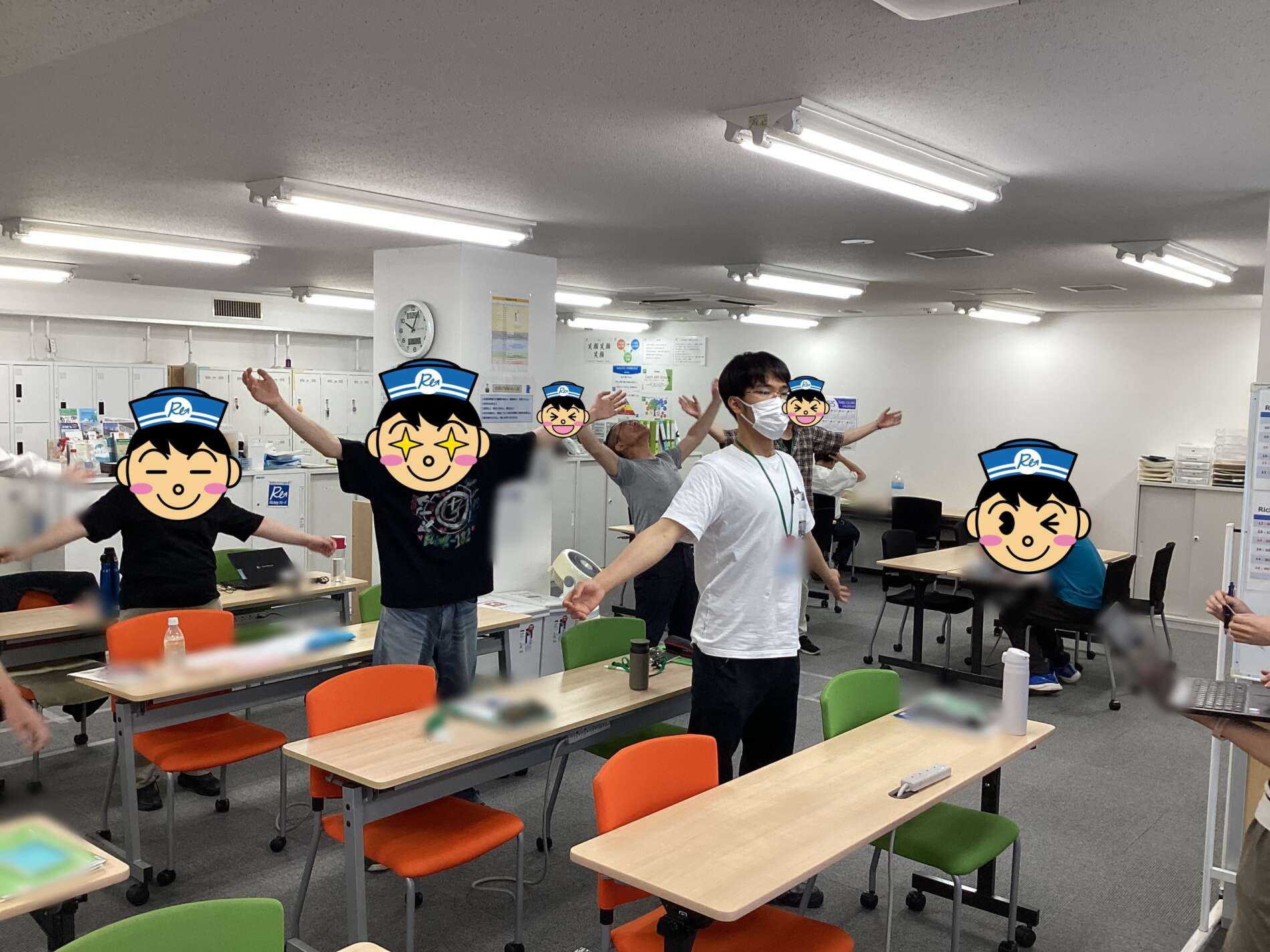 午後は椅子に座って肩甲骨を伸ばすストレッチも行い、体のケアもばっちりです!
