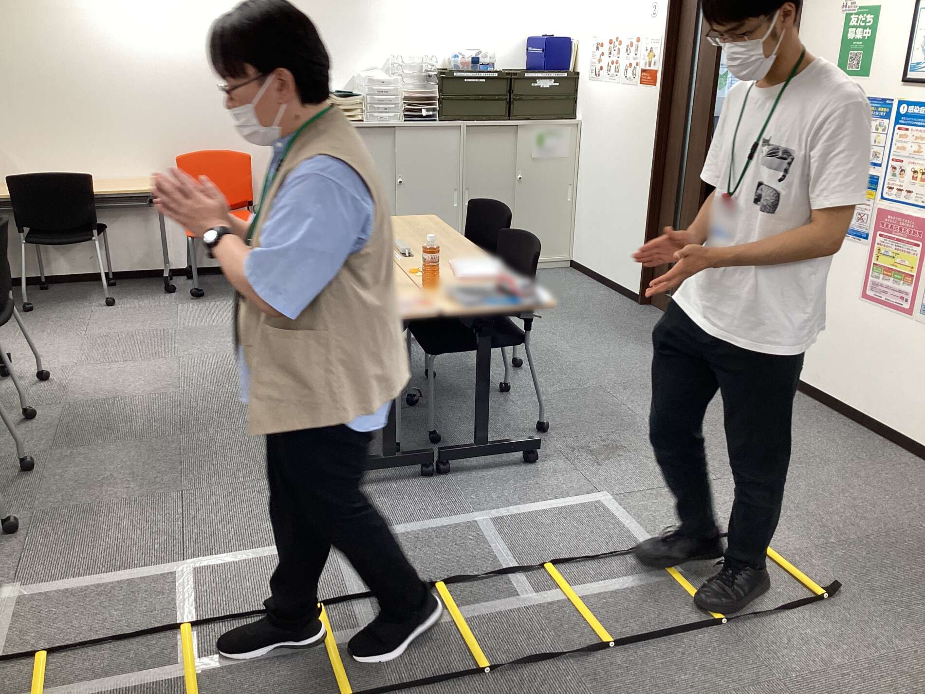 ラダー運動では、リズムよくステップを踏んで下半身の運動を行います💪