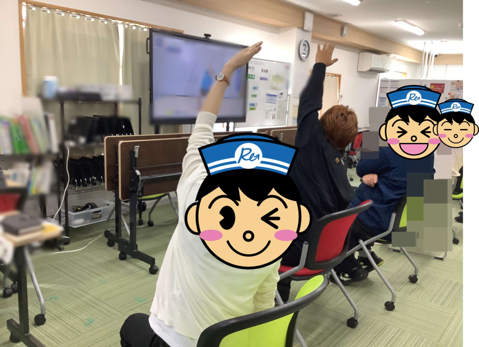映像の動きを見ながら一緒に身体を動かしリズムをとります