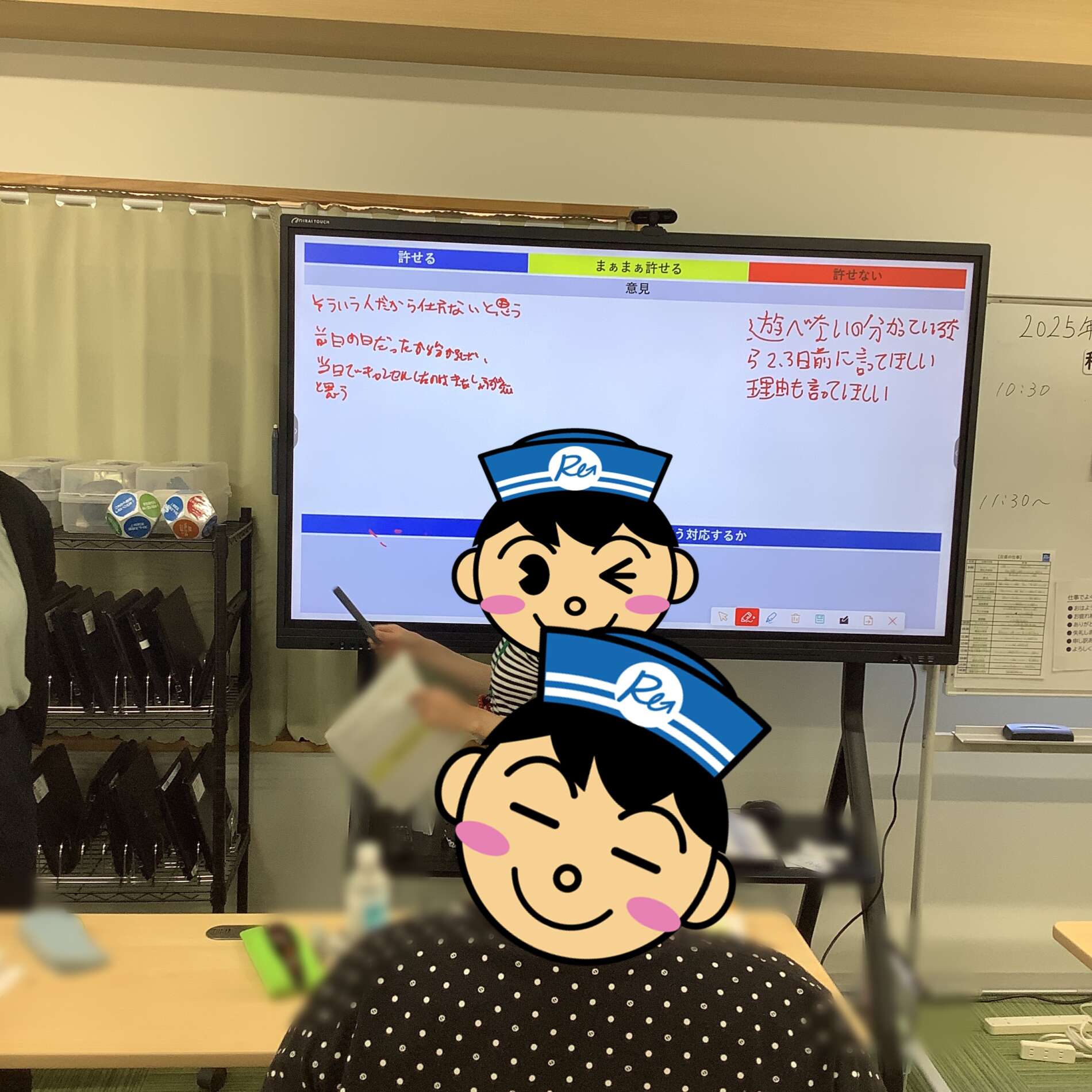 講座の中では、友人との遊びや挨拶をした時など、様々な場面での出来事について考えていただきました