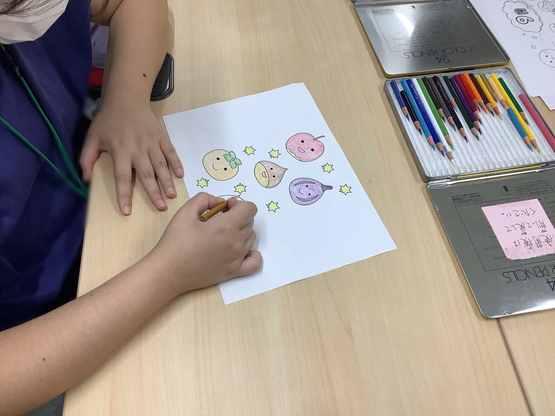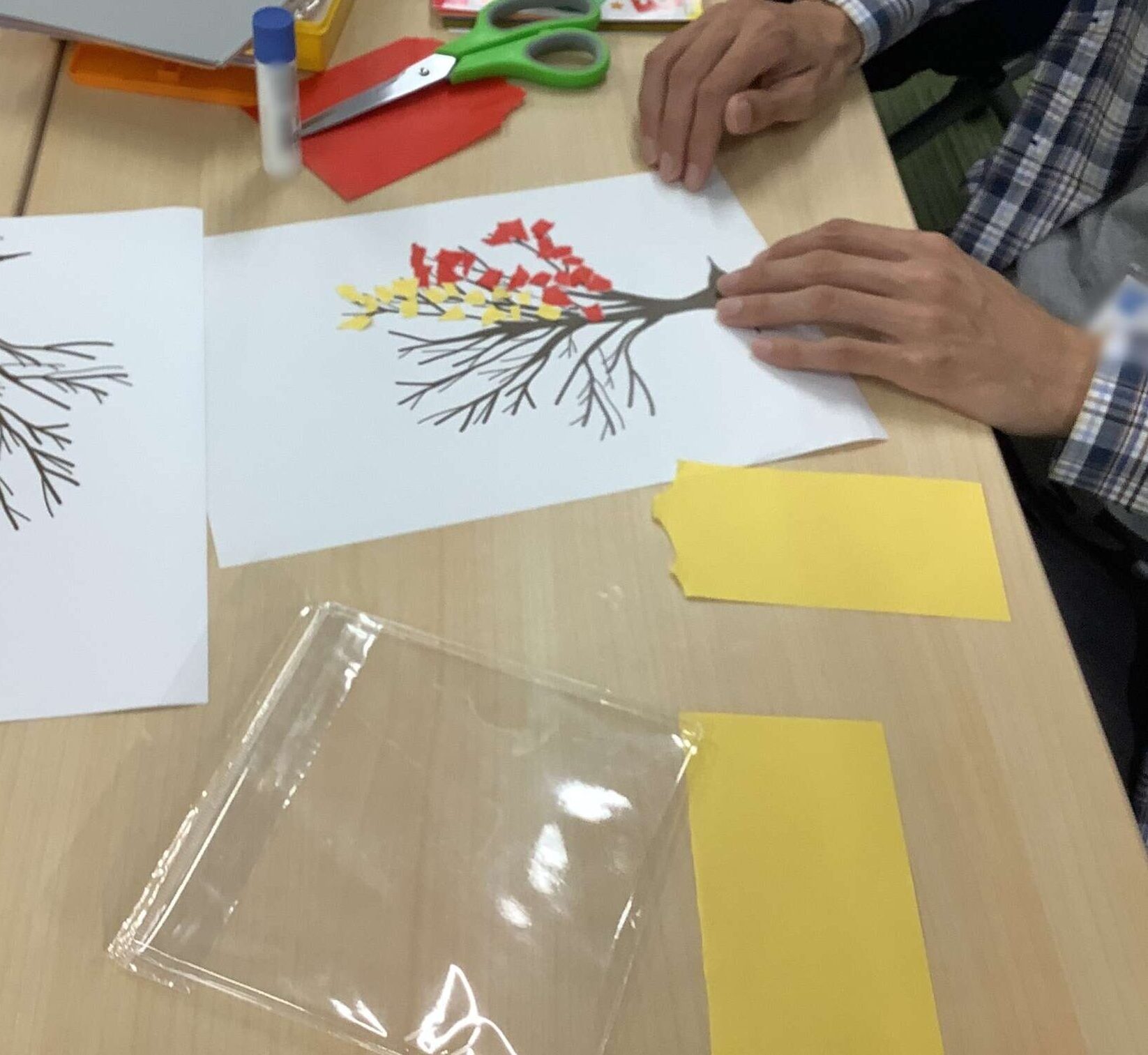 集中力や巧緻性の向上を目的として、ちぎり絵や色塗り、ハサミを使用した作業を行いました