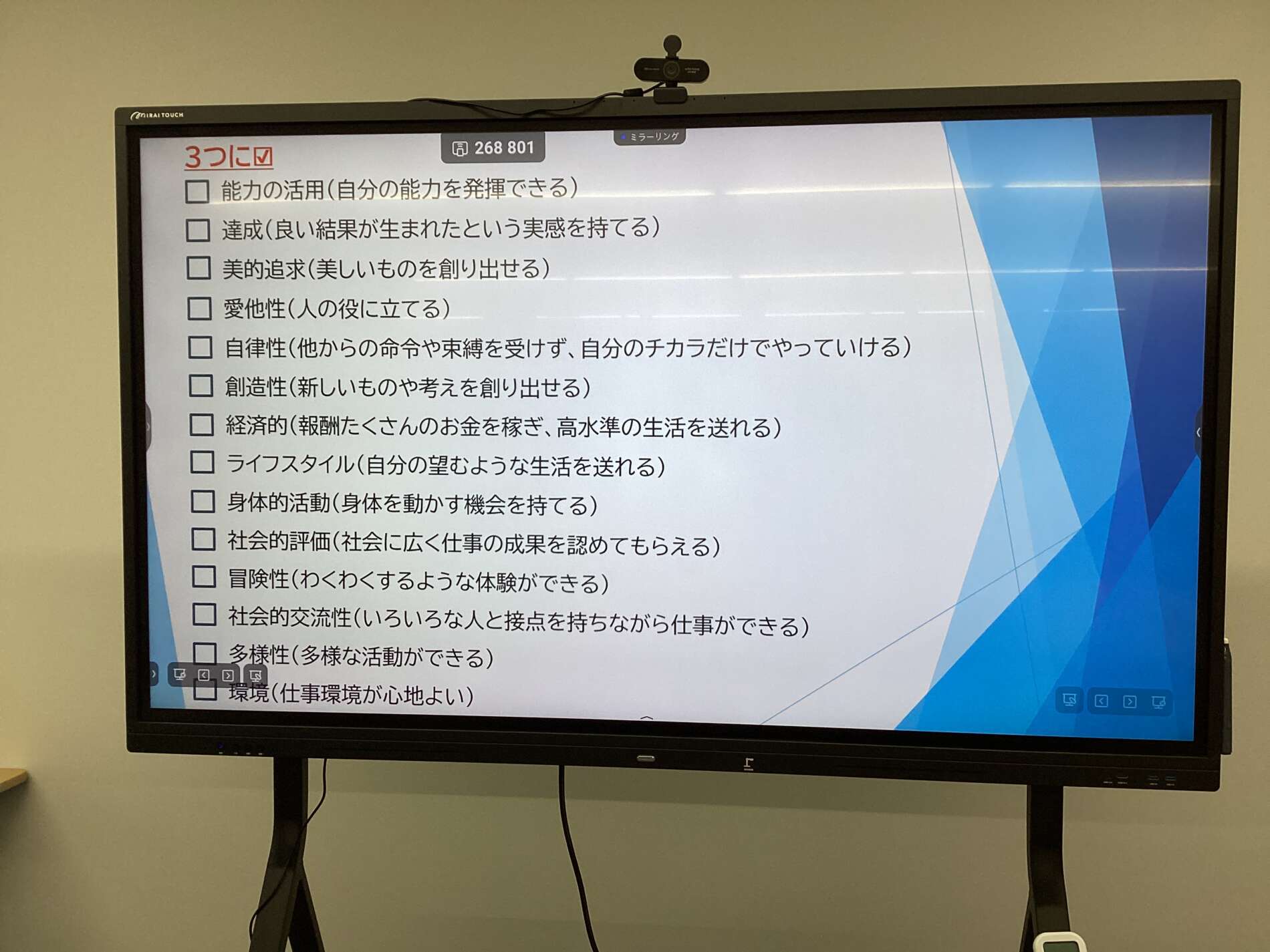 参加者一人ひとりが、「自分にとっての“働く”ってなんだろう?」を言葉にしていきます。