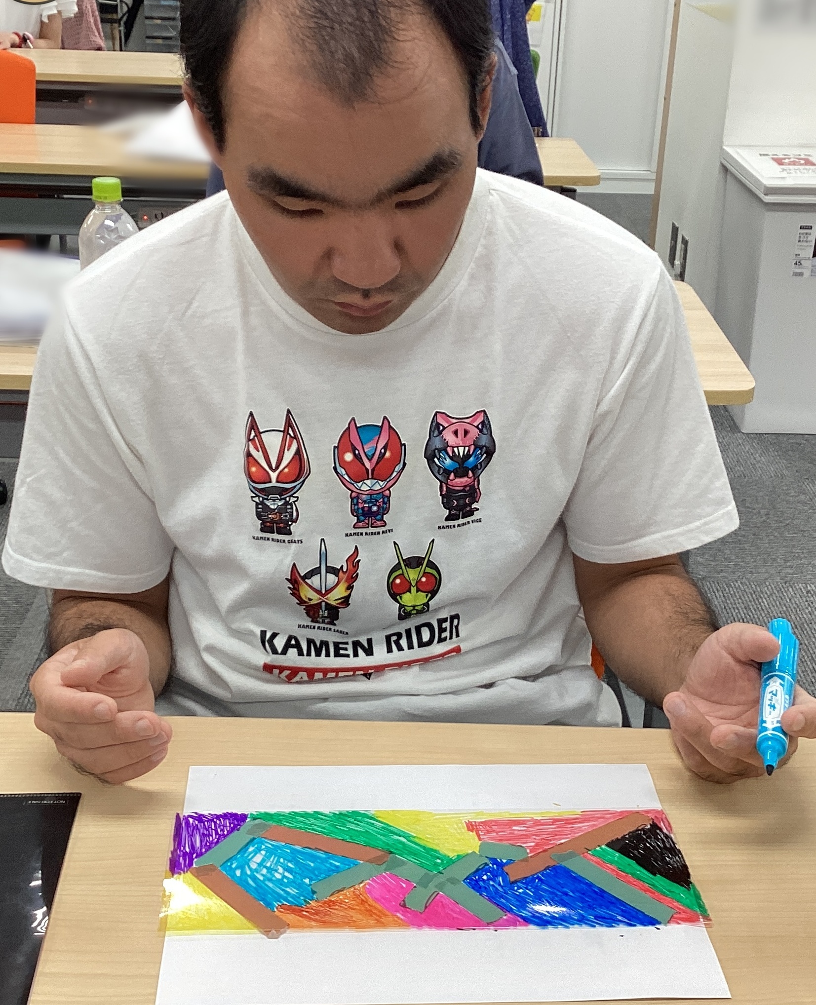 まずはクリアファイルを土台にして、好きな曲をイメージしながらマスキングテープを貼っていきます。