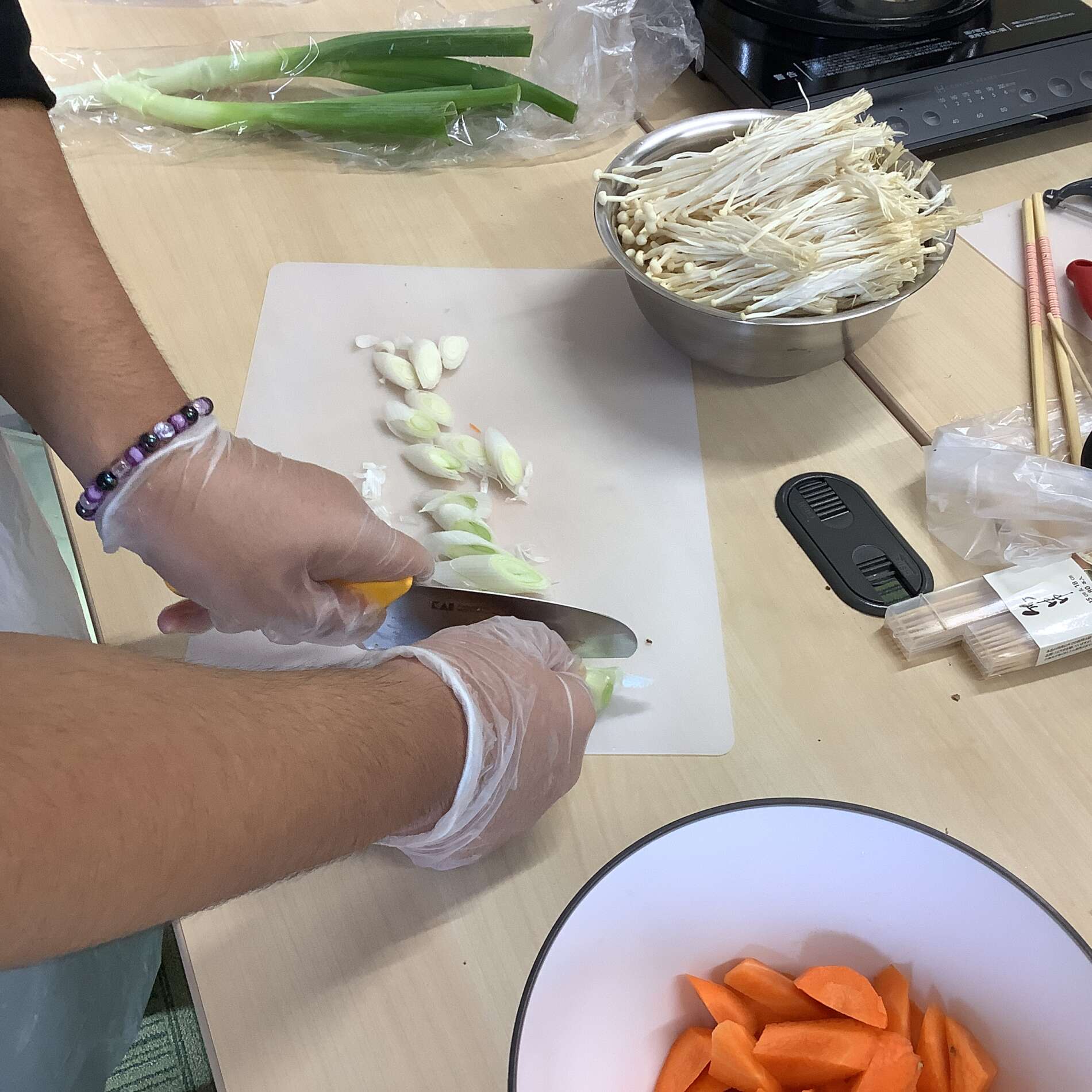 就労移行支援では、芋煮を美味しく作るための「下準備の手順」を話し合い。