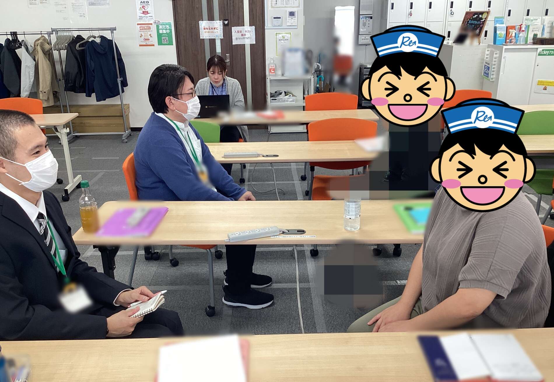 ネクタイを締め、背筋を伸ばし、真剣な眼差しで面接官役のクルーさんと向き合っていました。皆さんの「就職するぞ!」という意気込みがひしひしと伝わってきましたよ。クルーさん同士だからこそできる、遠慮のないフィードバックも飛び交い、非常に有意義な時間となりました。