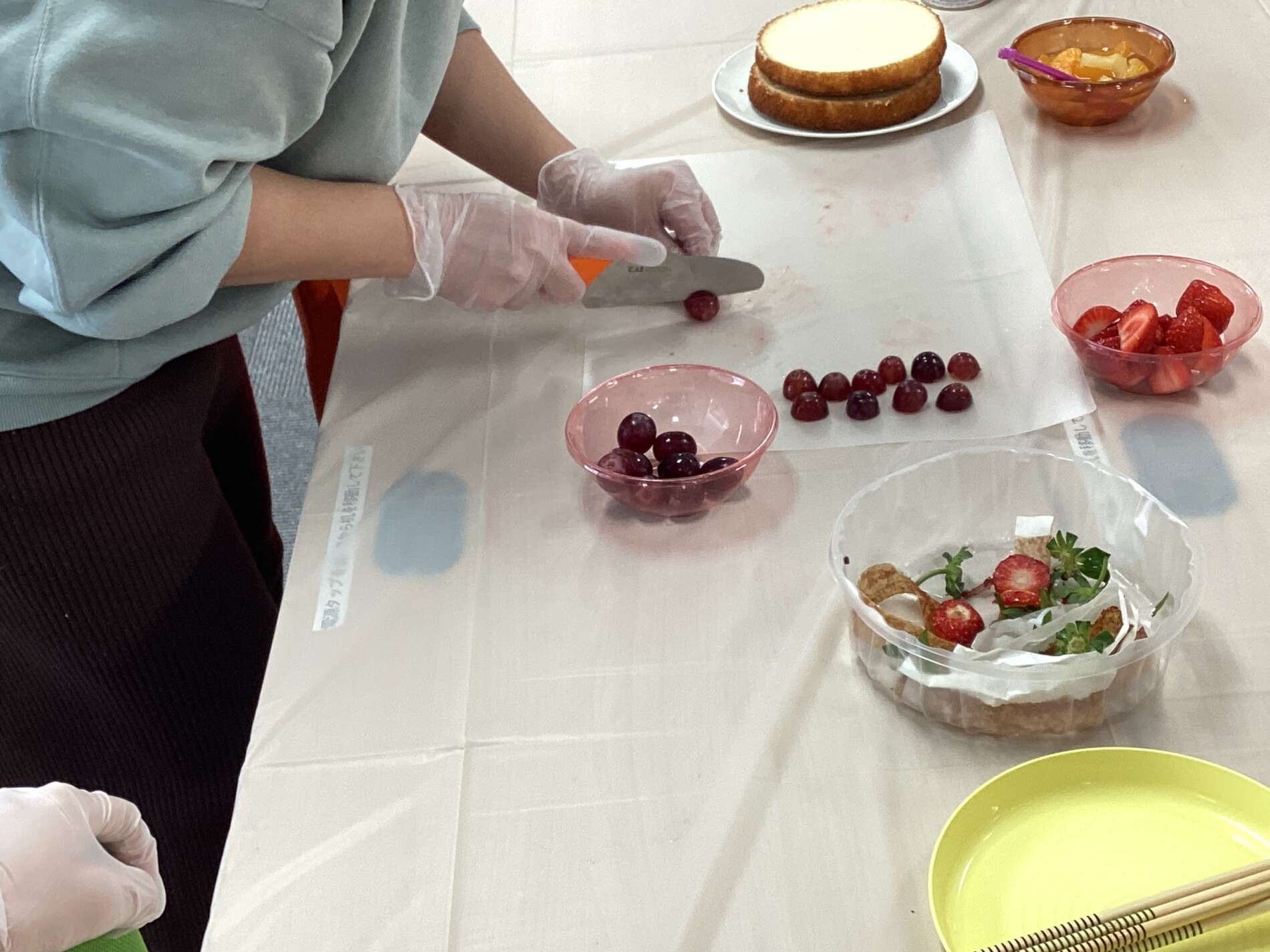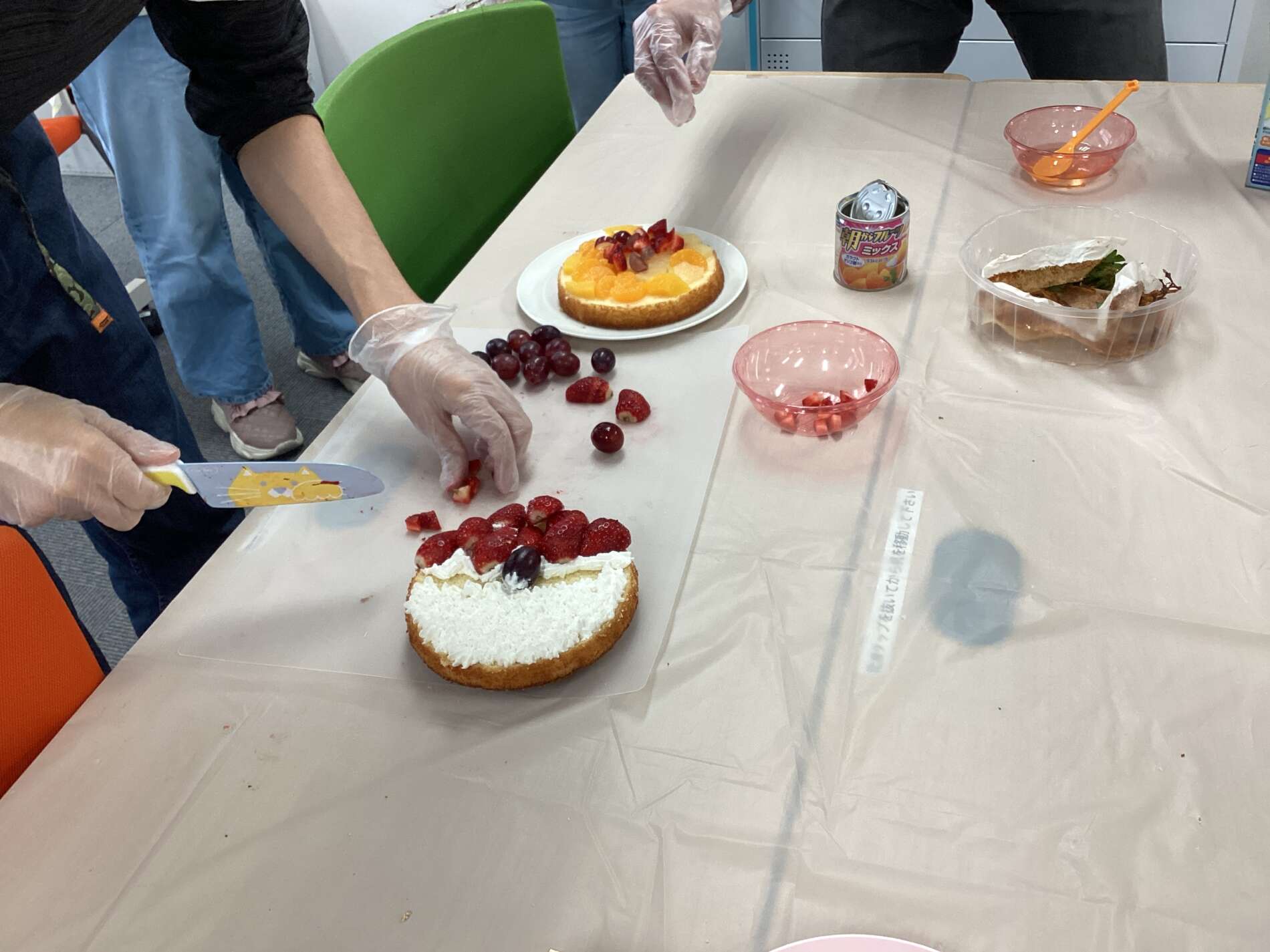 相談しながらフルーツを切って…