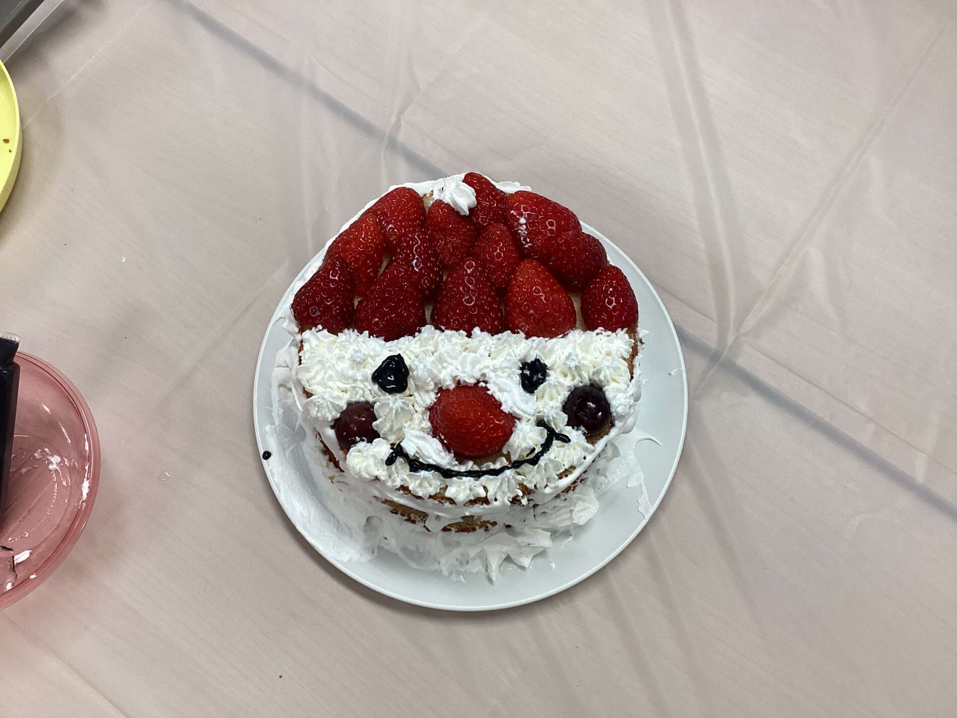 生クリームとフルーツを使ってサンタクロースの顔を作っていきます🎅