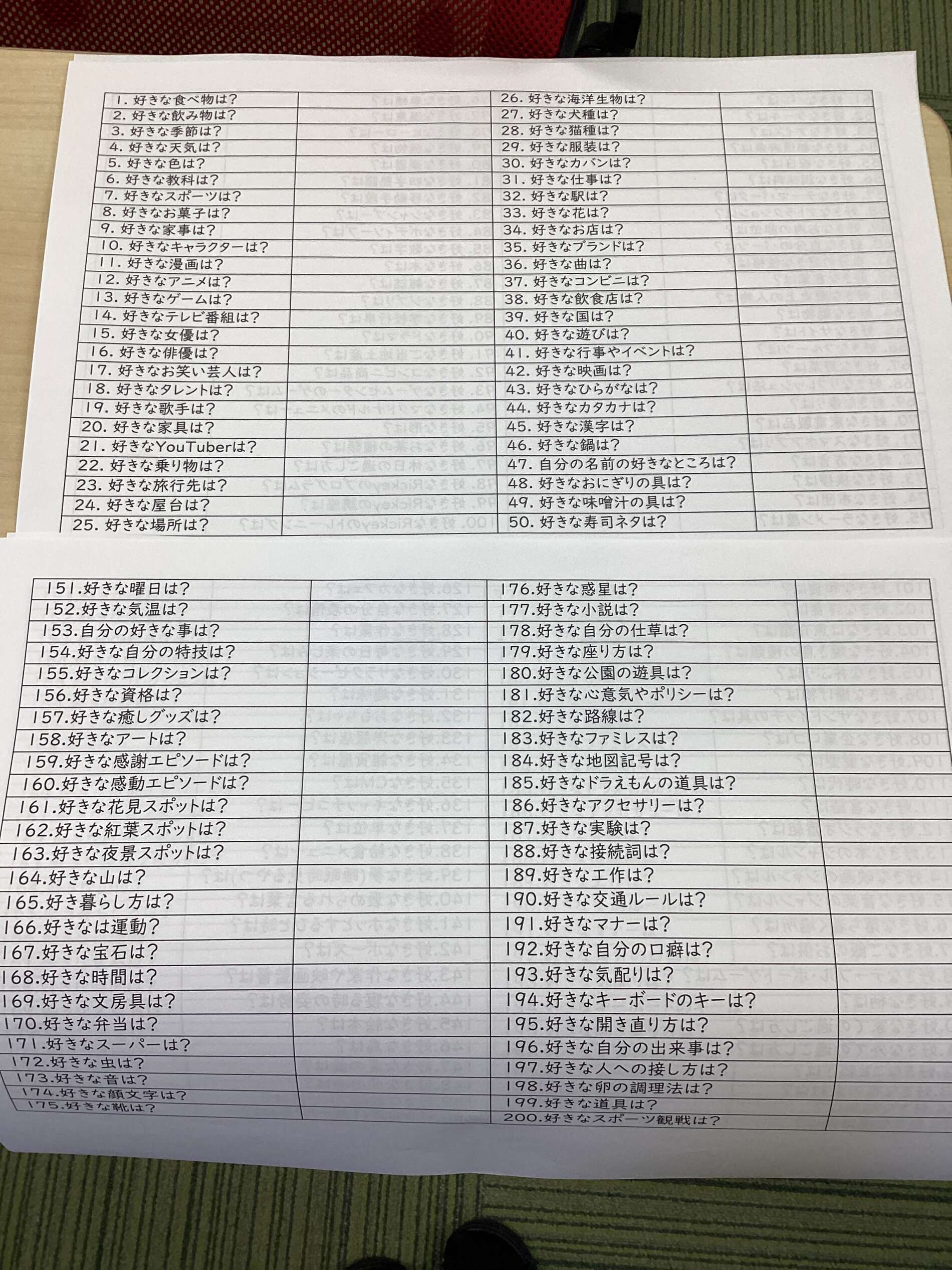 金曜日は、自分自身をポジティブに見つめ直すワーク、「好きなもの100個見つけよう」に取り組みました。