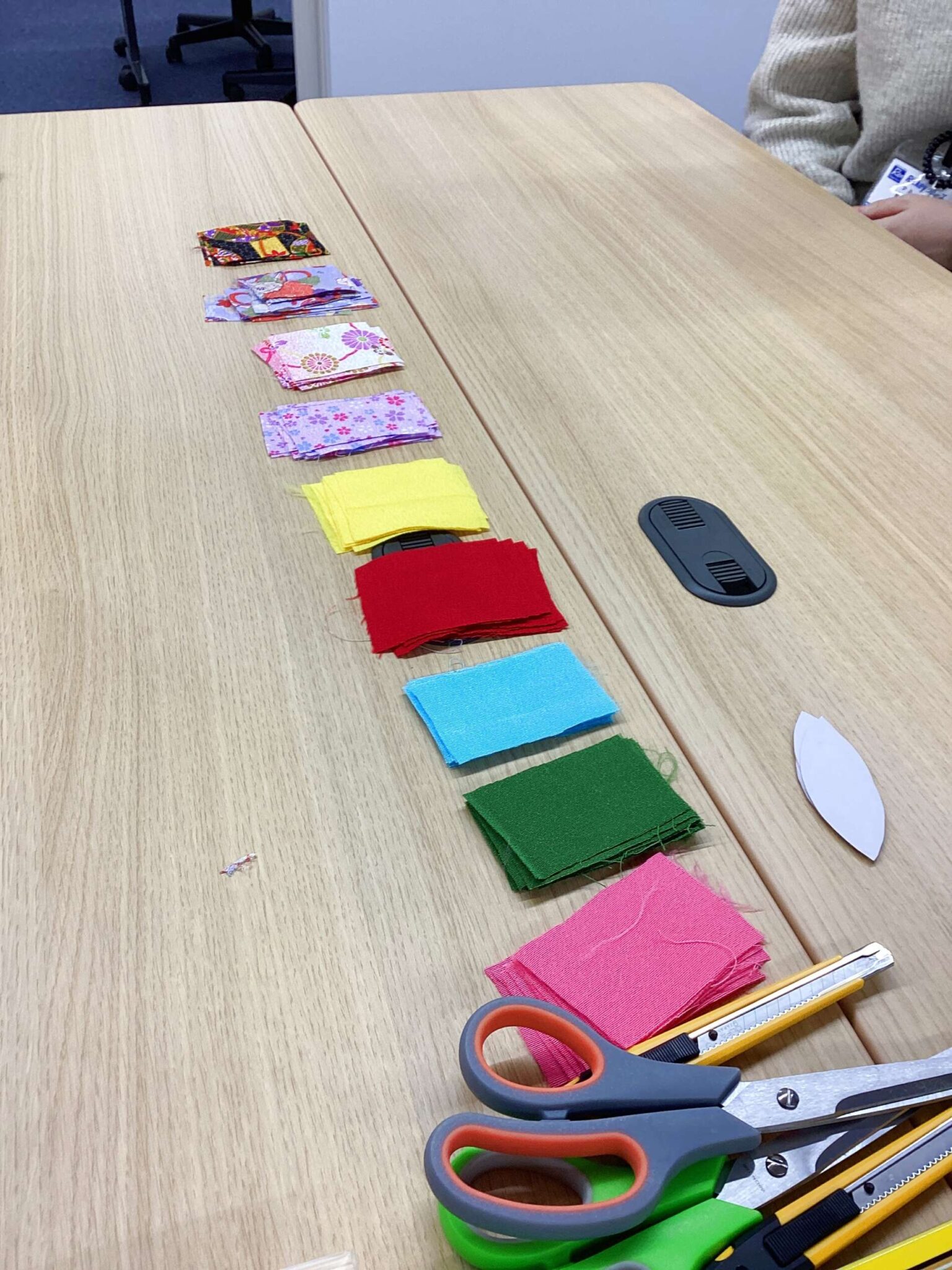 色とりどりの布を選びながら、もくもくと作業に没頭。