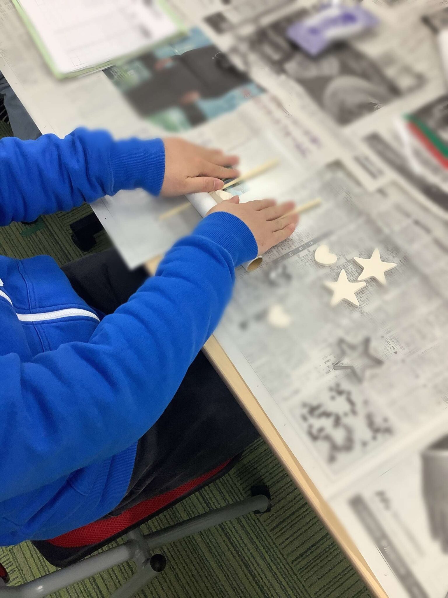 粘土を薄く伸ばしたり、成形したりと細かい作業が続くので、自然と「巧緻性」も高まります!