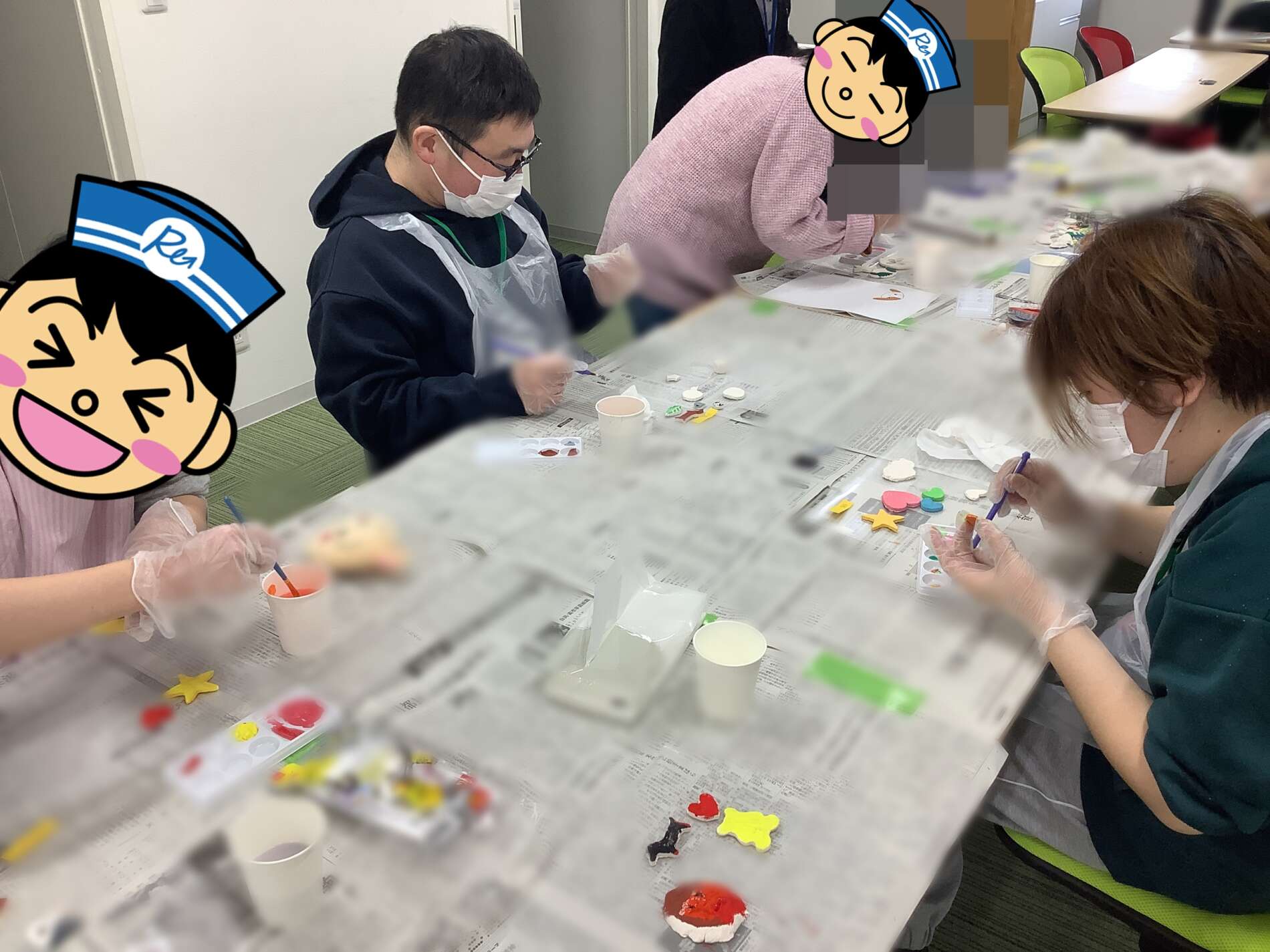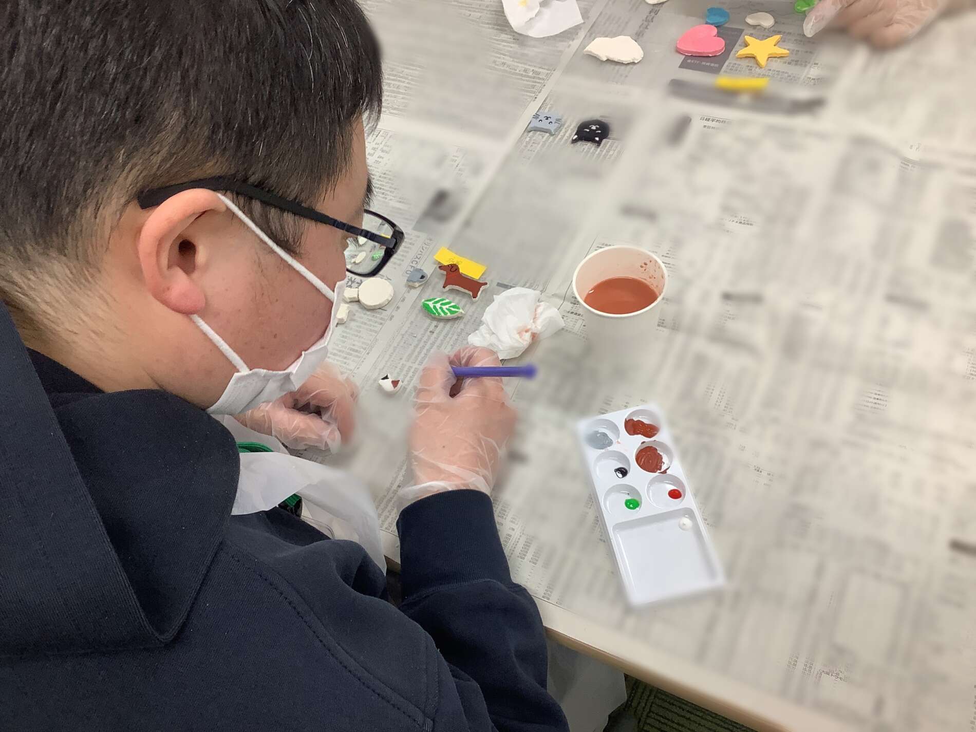 本日は、木曜日に行った小物作りの続きをしました。前回できた作品に色塗りをしていく作業です