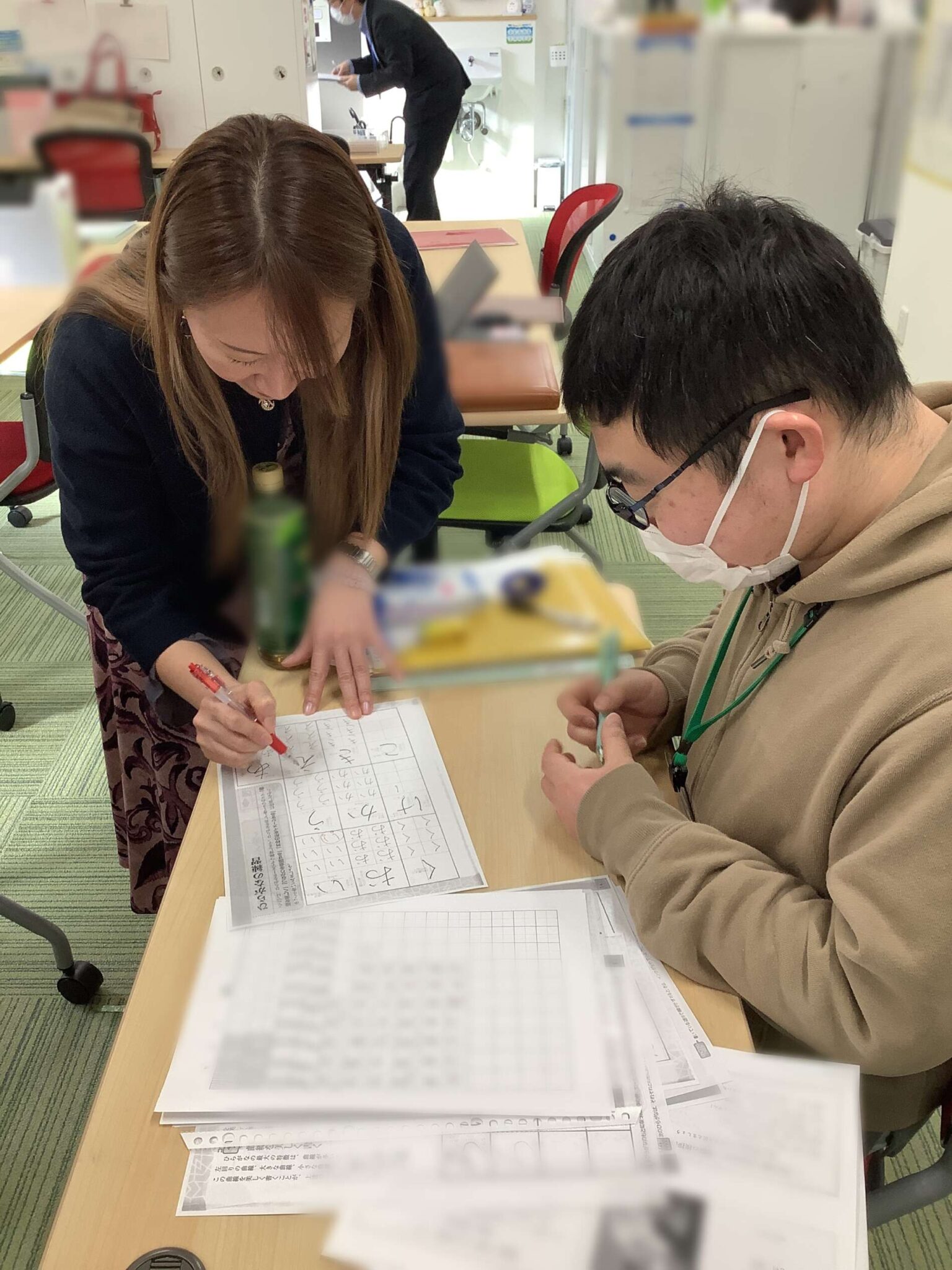 書字のコツをお伝えしてくださった後に、一人ひとりの席を回り丁寧にご指導いただきました。