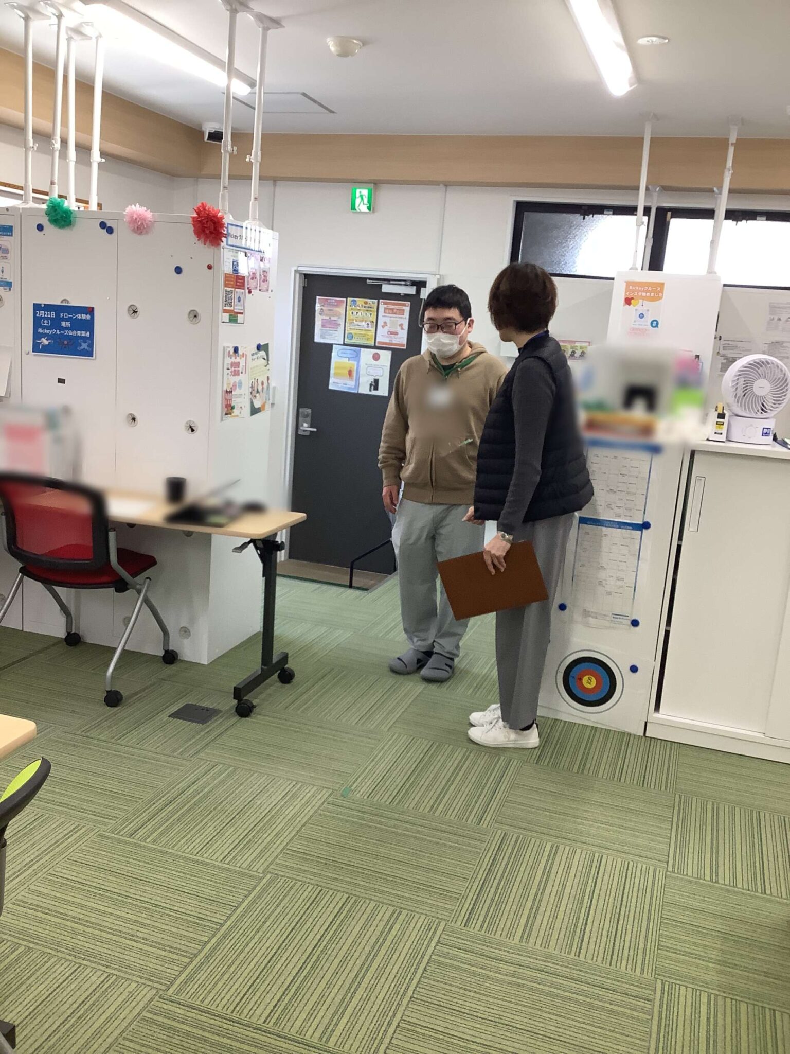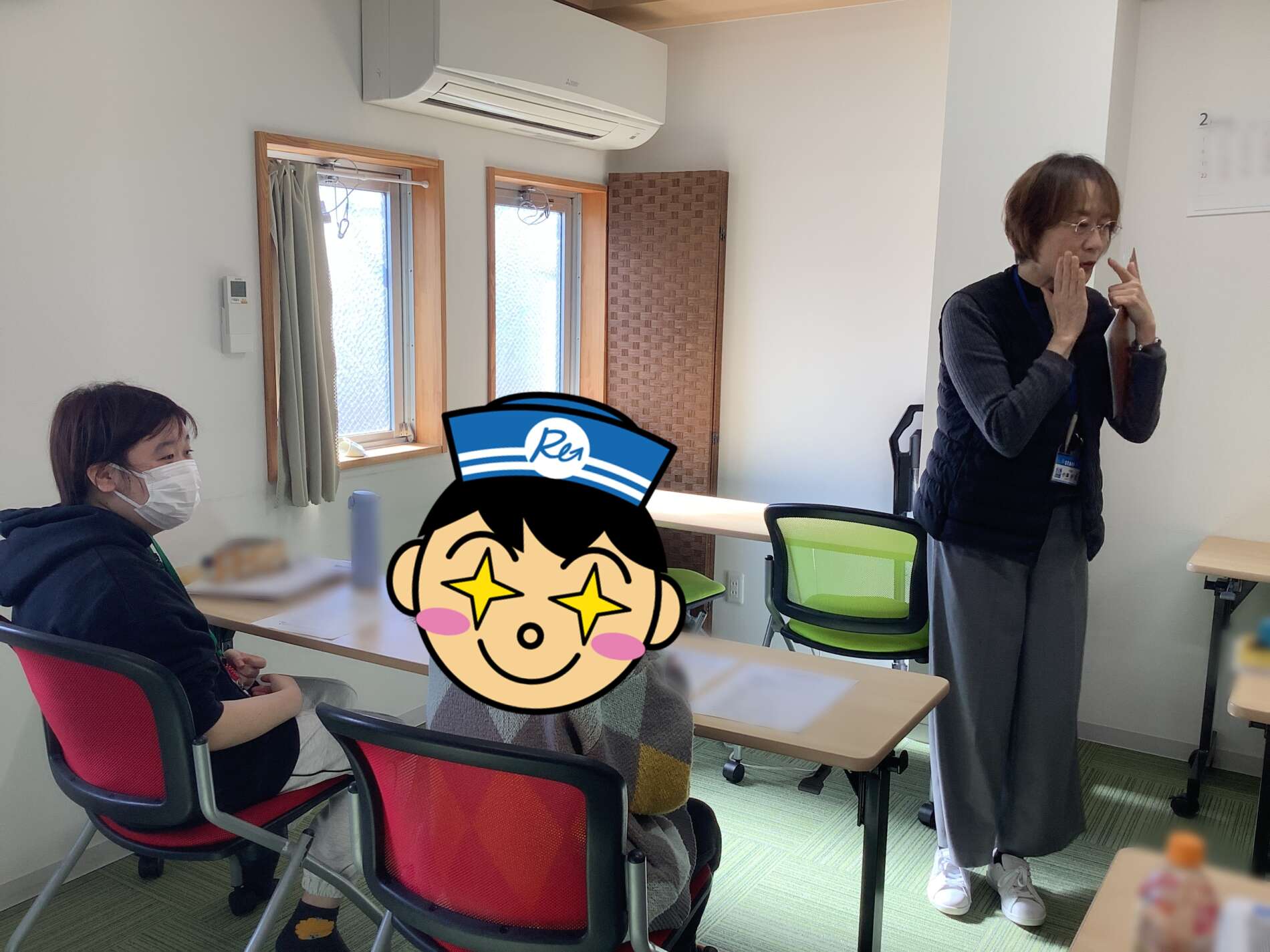 今回は、事業所に入る時の挨拶を改めて確認し、実際にロールプレイングを行いました。