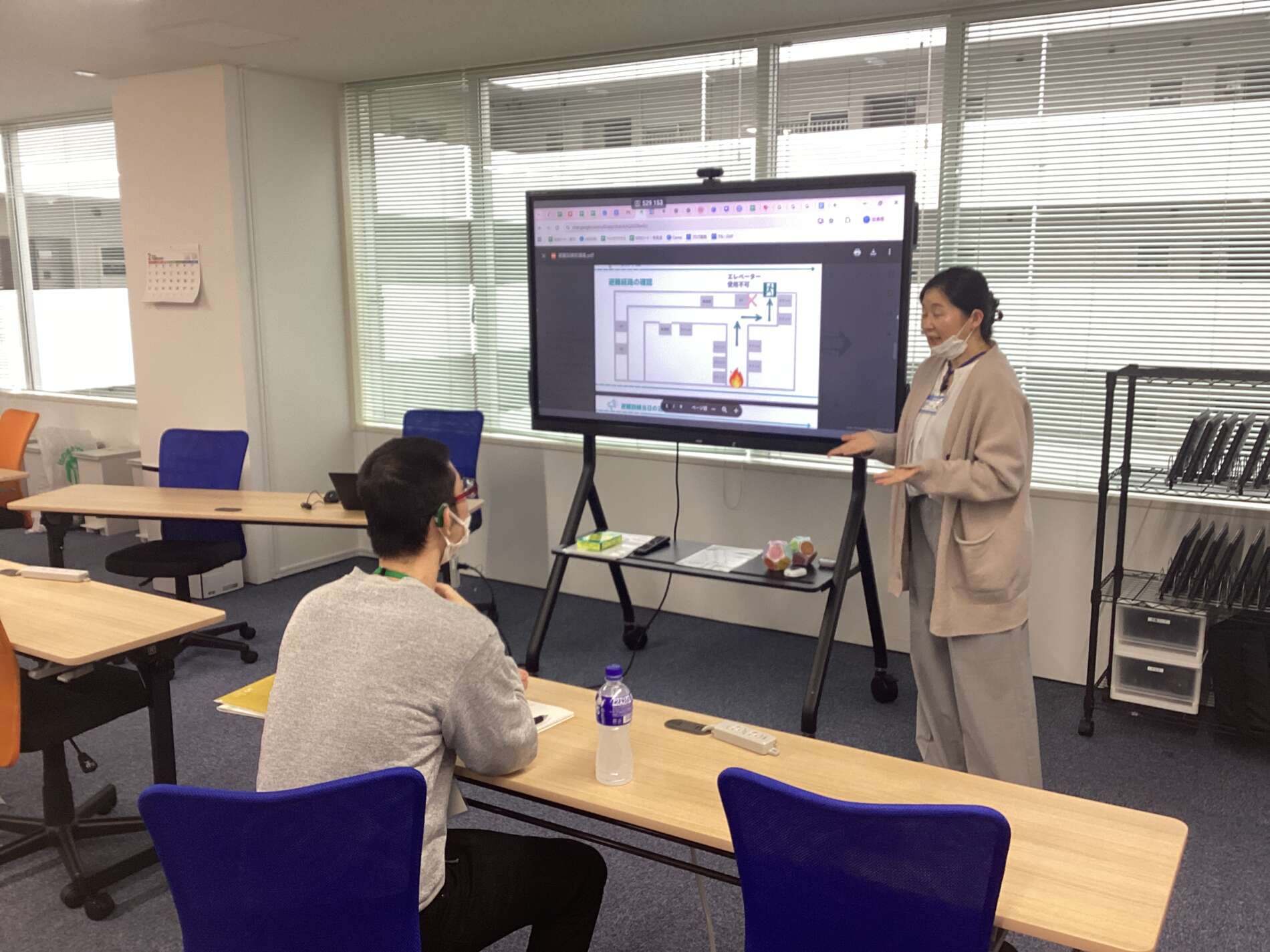 いざという時に落ち着いて行動できるよう、避難経路の確認や点呼の仕方を再チェック。