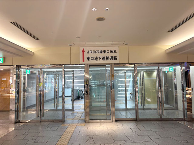 「JR仙台駅」東口地下連絡通路入口から連絡通路を通ります。