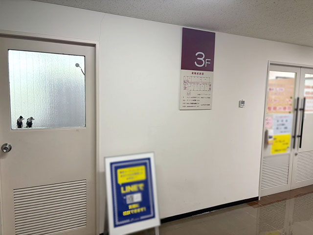 エレベーターを降りると3階の案内表示が見えます。
