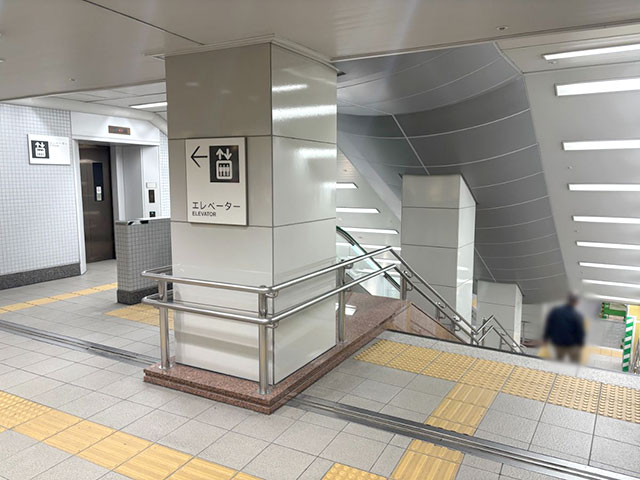 出口3を曲がると、間もなくエレベーターが見えます。