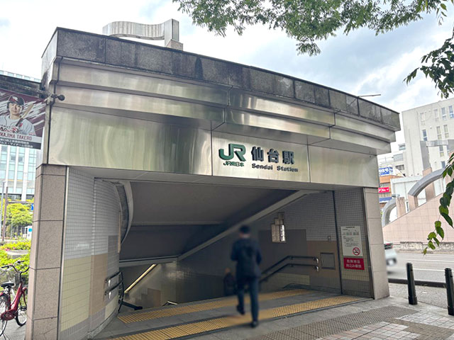 階段またはエスカレーターを登りきると、「JR仙台駅」と書かれた出入口に到着します。