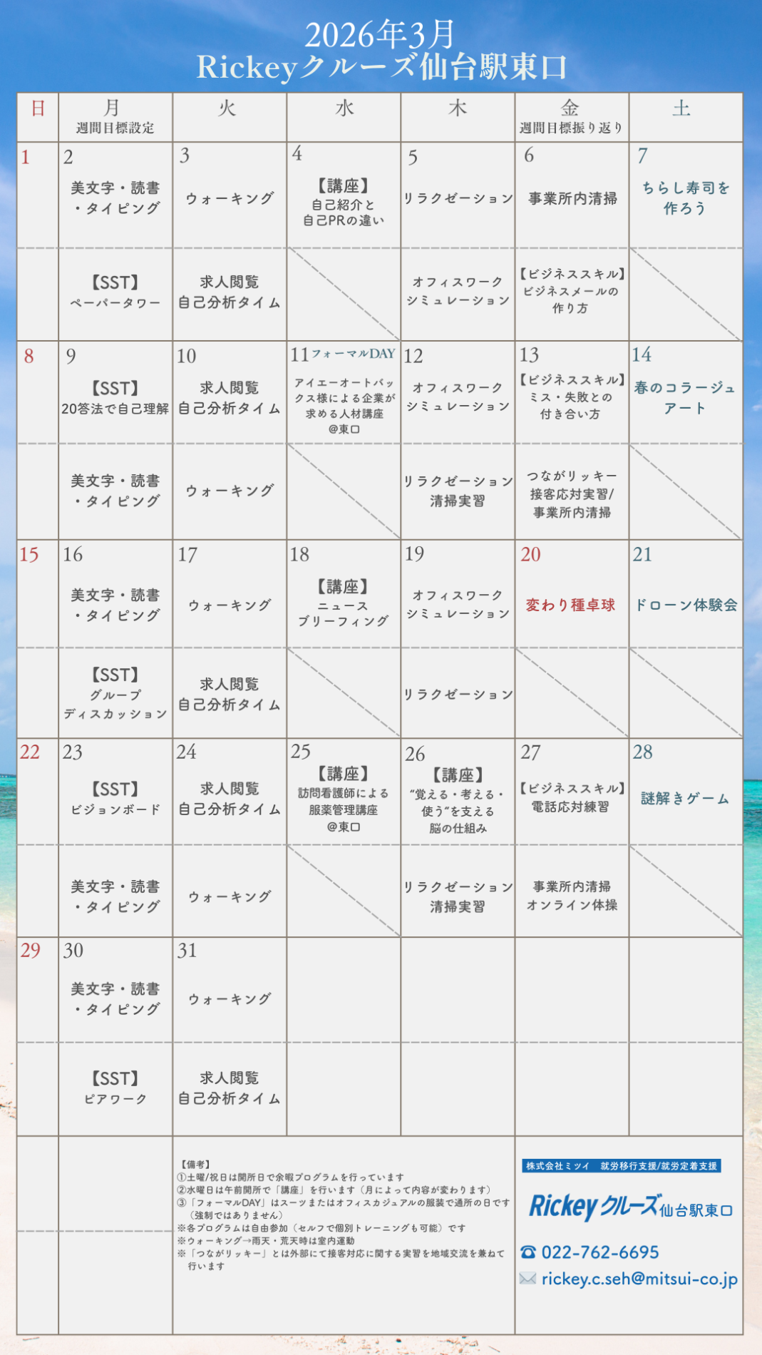 皆さま、ご機嫌いかがでしょうか。本日のブログ担当は口内炎ができてしまい、「サ行」が上手く言えない須藤です。 先々週、先週とRickeyクルーズ仙台青葉通では発声、活舌の練習で『外郎(ういろう)売り』のセリフ…